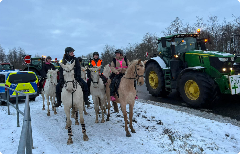 „Teilnehmer der Demo mit Traktoren können allerdings passieren. Bitte den gesamten Bereich weiträumig umfahren.“
